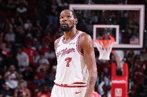 官方伤病报告显示,杜兰特因右膝挫伤出战成疑。